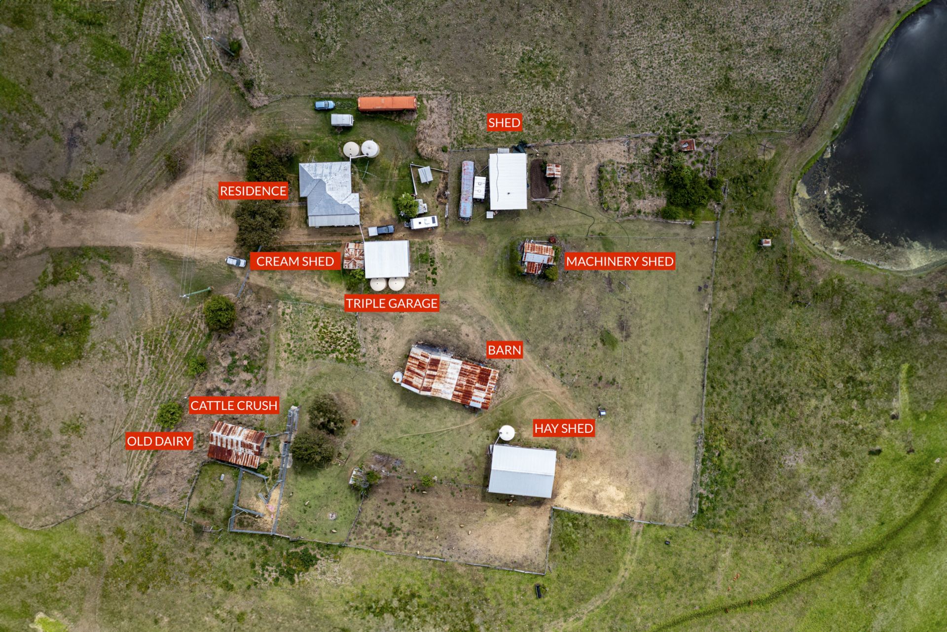 The property has Two Dams, one is Spring Fed and Two Bores that Irrigates a large paddock currently used for growing "Lucerne Hay" the property can hold up to 30 head of Cattle, plus several Sheep.